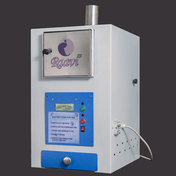 A safe, hygienic, scientific & quick method of disposal of sanitary napkins is to incinerate them at relatively low temperature to harmless sterile ash. It helps in instant disposal of used napkins in a very scientific and hygienic way without generating harmful emissions. Proposed Incinerator come with Ceramic high density insulation for external thermal protection, Auto Thermal Cut off for power saving. Capacity of the machine is 200 napkins per day.